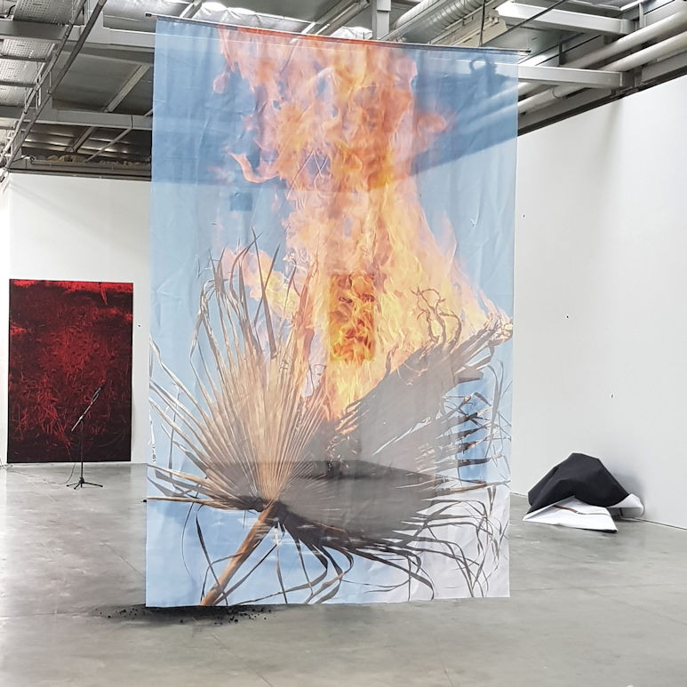 Her starting point is the French Riviera, which she has a personal connection with, as well as the historical, social, and societal issues it compels her to confront. It is a territory that reveals many paradoxes, peculiarities, and sensual and tragic fantasies, which she takes pleasure in countering, deconstructing, and transforming, going so far as to create a counter-fantasy of this place, “in which the sun would not be luminous but scorching, where dogs would prowl in the mystery of the night and dragonflies would die in the middle of the sea”.