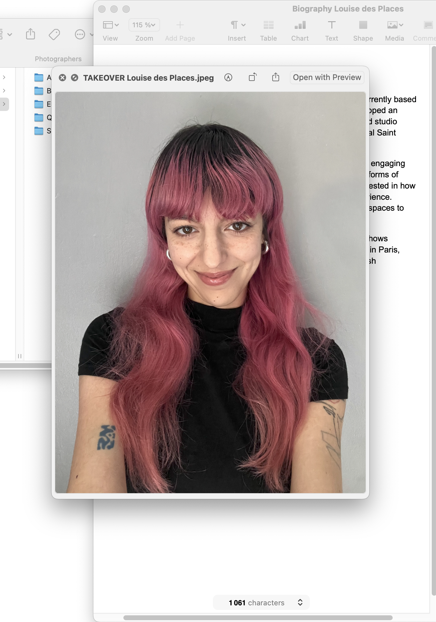 Louise des Places is a curator, writer, and arts journalist from Paris, currently based in London. She previously lived and worked in Berlin, where she developed an independent curatorial practice alongside roles as a gallery director and studio manager. She is currently pursuing a second Master’s degree at Central Saint Martins, University of the Arts London.