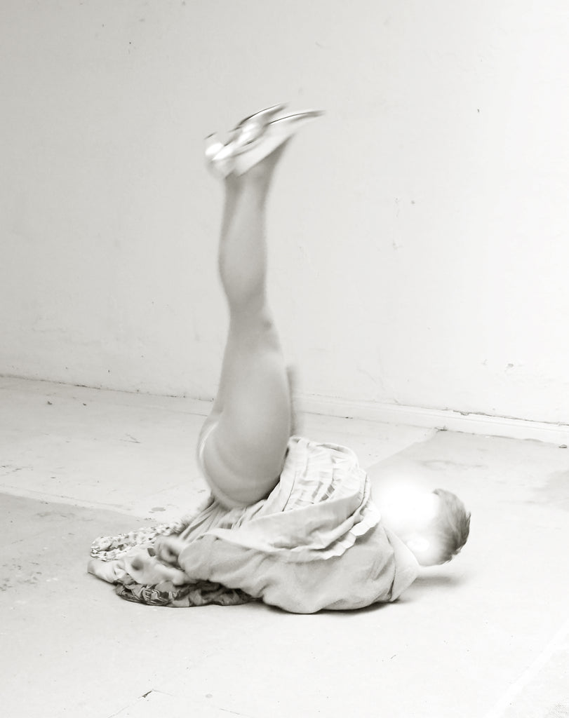 Wenzel questions the role of the camera and the one of the (female) body. She makes use of her own body as a model in order to convey an image by movement. Wenzel works in a fast, direct and very spontaneous way. Photographer and model become one.