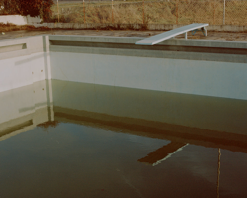 Abandoned swimming pools, wintery forests and deserted houses become the landscape for Ferguson’s fragmented writing. Memories are lost within the present and short phrases are given as much signicance on the page as photographs. The photographs too are fractured and sometimes in the pictures and words we see things recur.