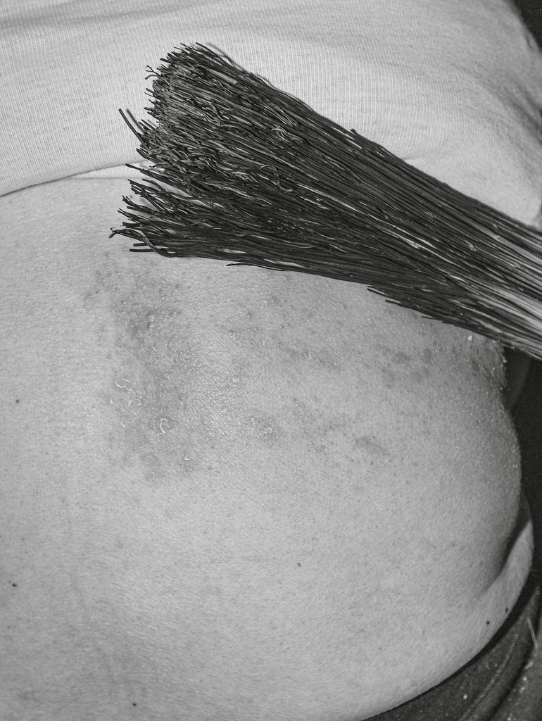“Fire against fire” is the formula used to explain the nature of this ancient tradition, or in Latin “similia similibus curantur”, a sort of homeopathic medicine. The practice of healing is based on one principle of analogy and on the exclusive use of natural elements such as wood and flame. The project tries to reflect on the themes of knowledge and memory in a parallel way, combining the oral history of the healer with a heterogeneous mixture materials: documentary photographs of a rite, plant elements, selfies of some healed patients, microscopic images of herpes zoster cells and healer’s signatures made on photographic paper through the oxidation technique (off-camera photography).
