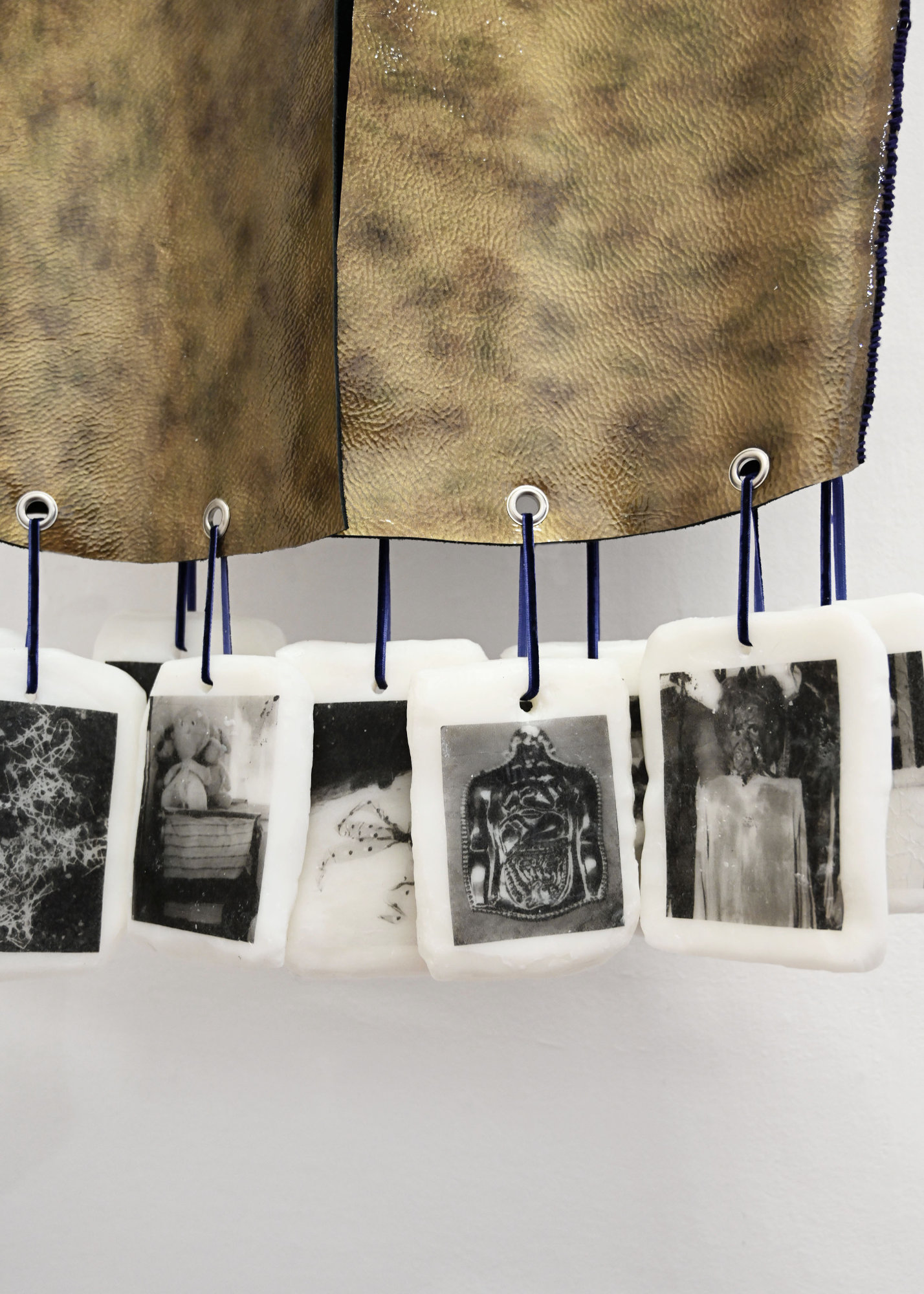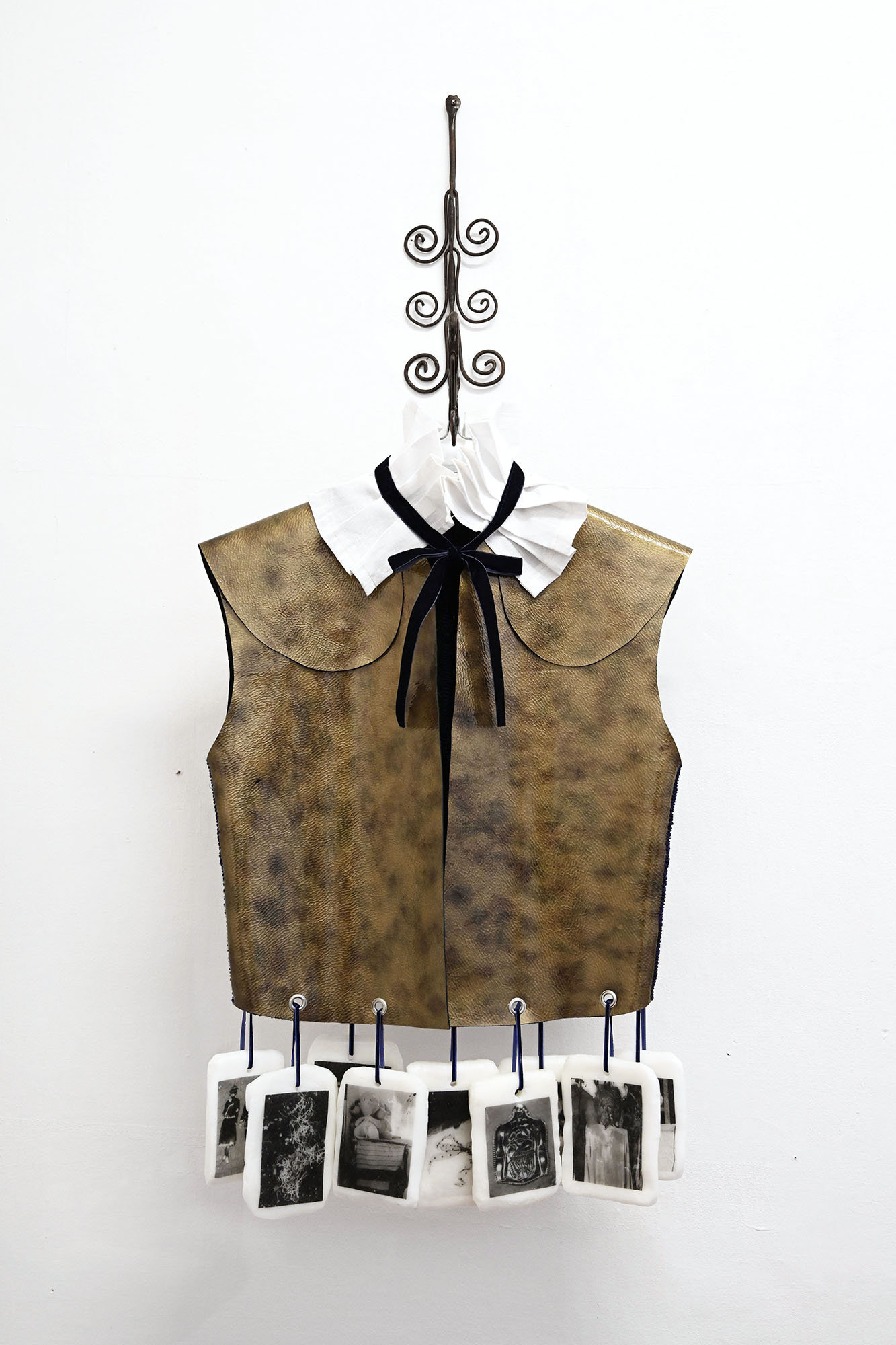 This installation revolves around a system of transfers, folds, and metamorphoses: wax, costumes, masks, altars, or deposits become conduits for the circulation of gestures and presences. These fragments function as transitional surfaces between the body, ritual, and image. The work is rooted in a dynamic of reactivation, where forms, traversed by collective narratives and contemporary political imaginaries, question relationships of power, visibility, and survival.