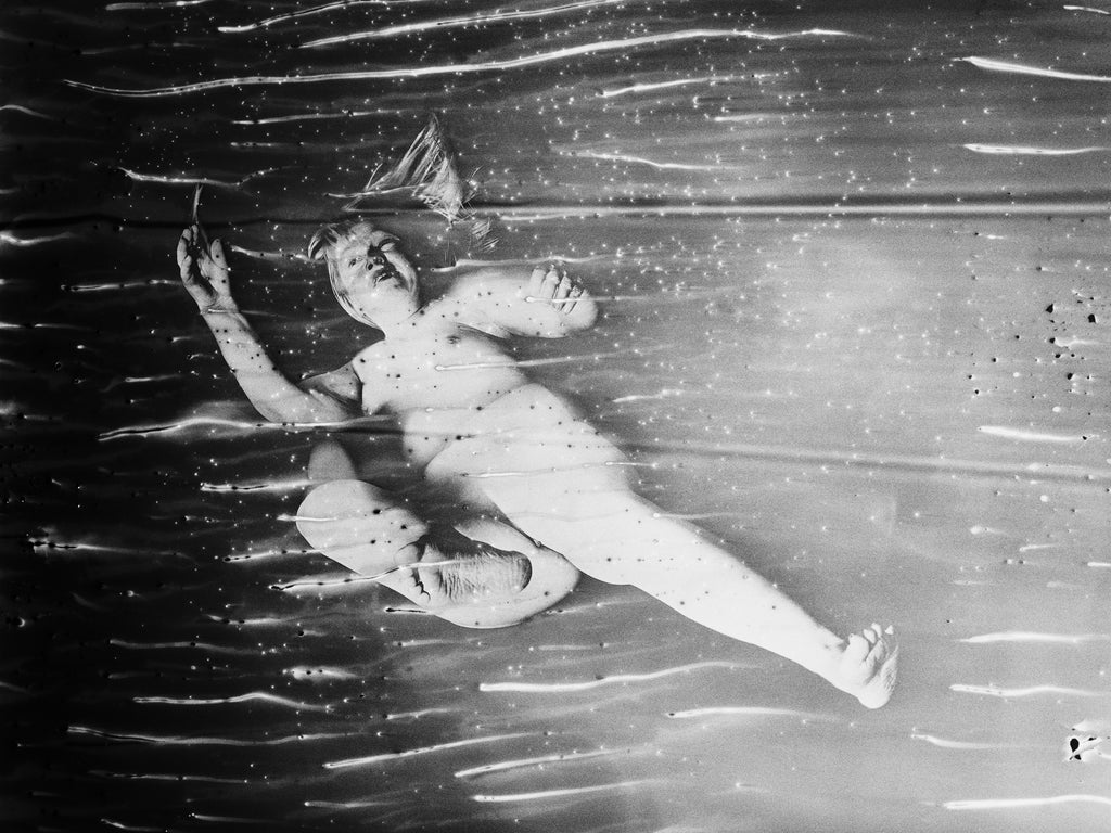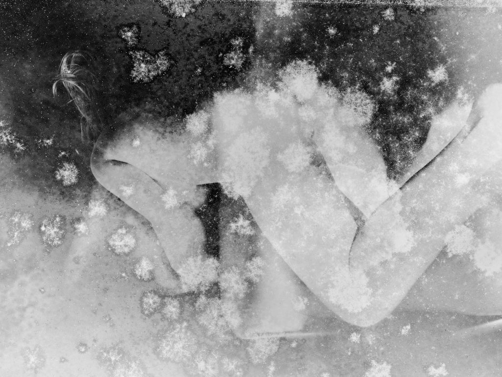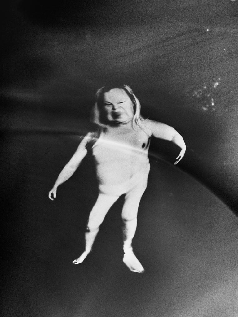 In his new austerely black and white work, Aapo Huhta fills his photographs with a darkness so impenetrable that it dissolves the horizon. This nocturnal void is inhabited by human figures that seem to be shrouded in milky mist or exist behind a veil of cosmic radiation. They are simultaneously both painfully corporeal and infinitely distant, almost like visual echoes from another dimension. These bodies give us no information on the space they inhabit, because their existence does not adhere to the familiar laws of physics.