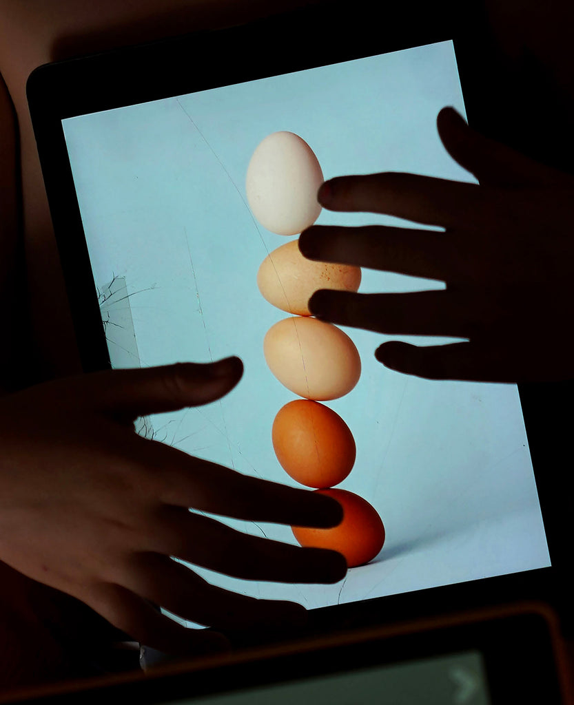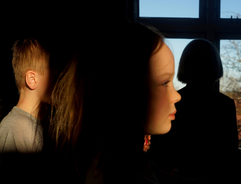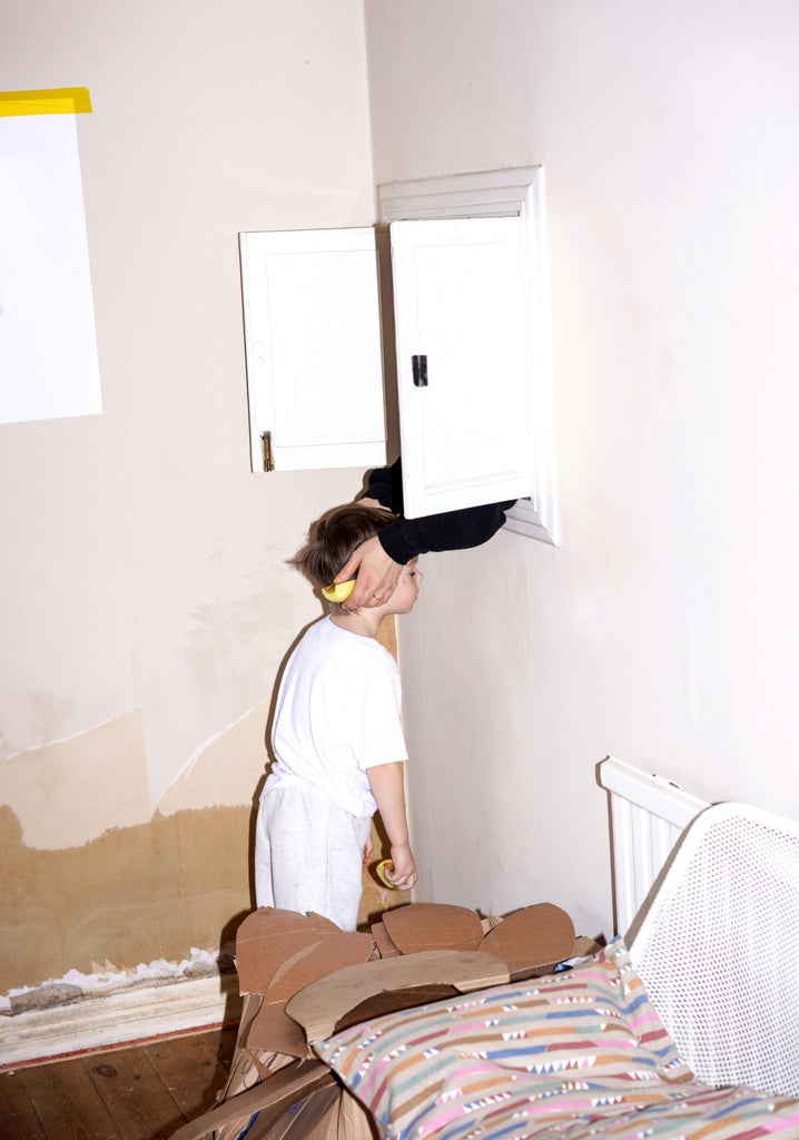In the song from which ‘Gravity Begins At Home’ takes its title, the Scottish musician Ivor Cutler assures us that the theory of gravity is ‘a lot of nonsense’, and Bolongaro’s photographs appear to support this notion – that when it comes to family, everything is up in the air: here objects (eggs, daffodils, lit candles) levitate, and children fly as though possessed. Here too are celestial bodies, mirrorings and doublings, games of scale, and collage-like overlappings and abuttings, alongside quieter, homespun scenes of domestic life (hair is brushed, telly watched, laundry folded).