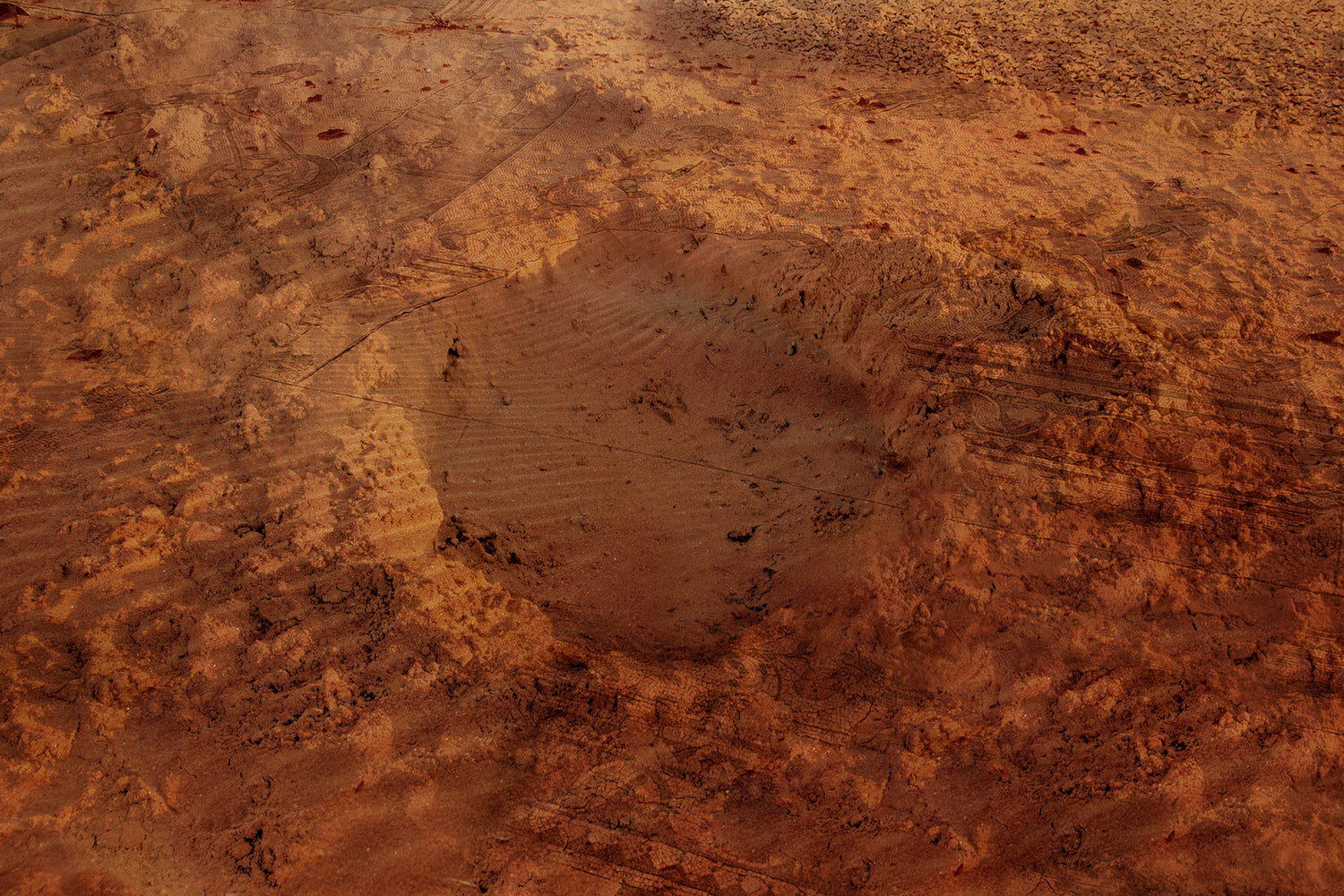 “Yamanlar tries to follow the ancient natural force for creation, demolition and regeneration, with the very manner a landscape painter would do. She watches the fluent liveliness of water to describe the sublime character of nature and the affections of excitement and terror it causes. How does the Platonic concept of ‘chora’ referring to an idea of matrix allowing anything to become, move and vanish within it’s boundaries help us understand water as an element regarded to be the origin for everything, the matter of constant motion and transformation? Water encapsulates the ugly and the beautiful, the ancient organic particles and historical remnants all bound within at the same time. What does the water make us face when it rises, and what does it reveal when it goes away?
