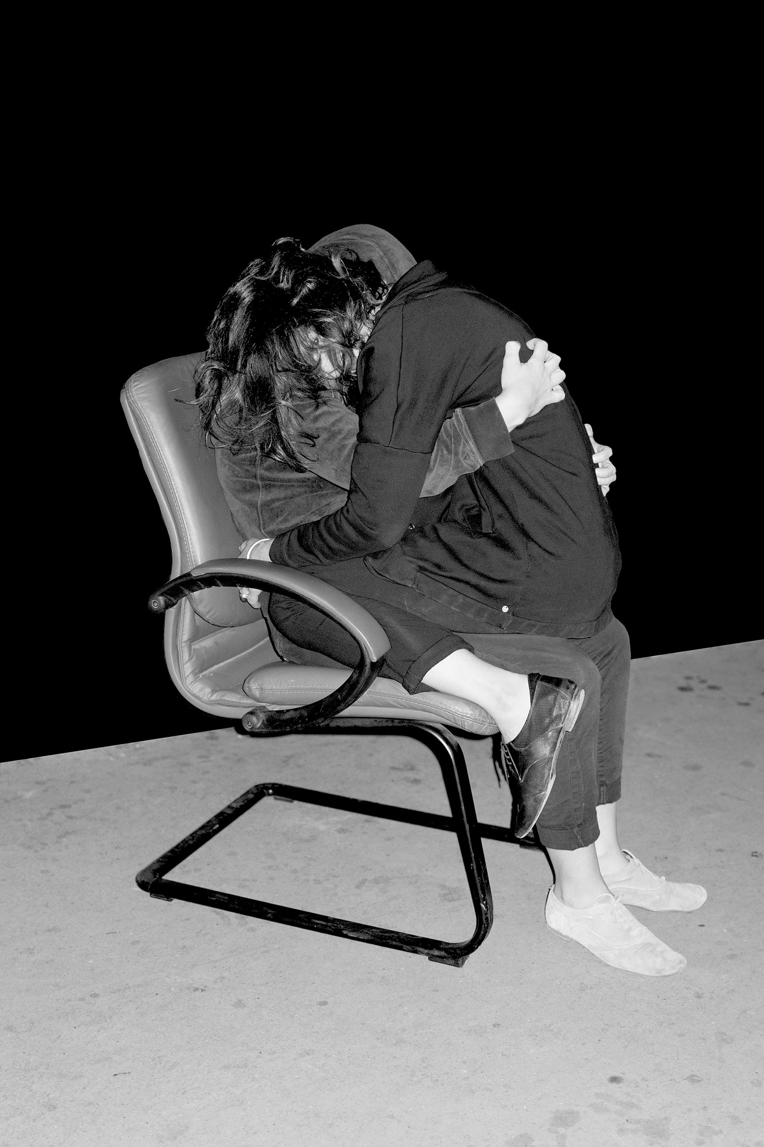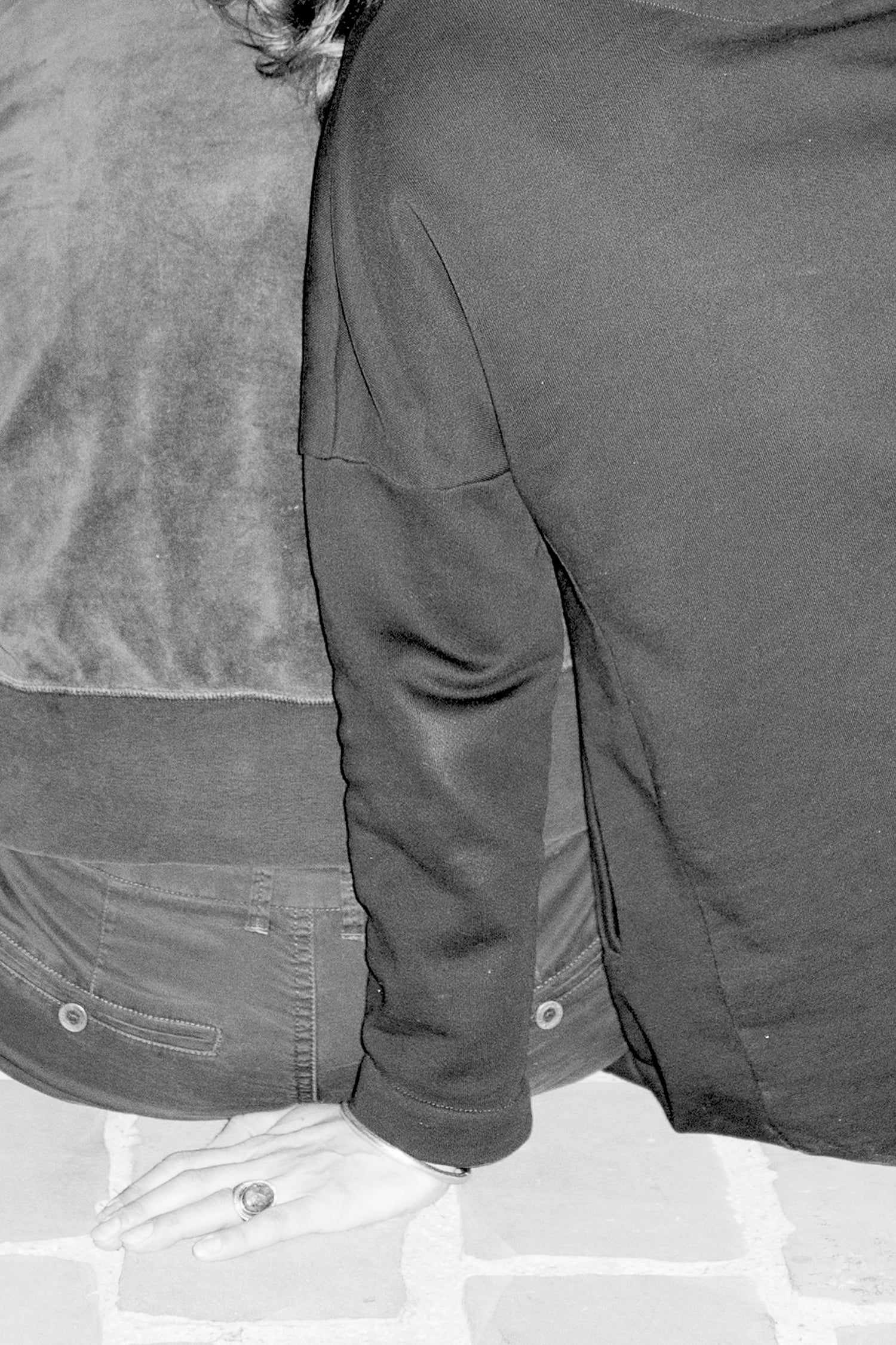 I was interested in the relationship to the outside space. I showed couples forced to hide in the streets, the occupation of space as a threat. Falling in love for queer people is a resitant act. Hiding bodies and gender. The hooded sweatshirt as a camoufage accessory and an indispensable armour for going out in Paris. But also as a sign of recognition.”