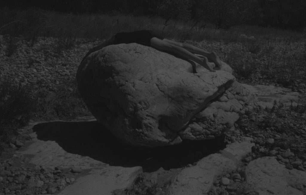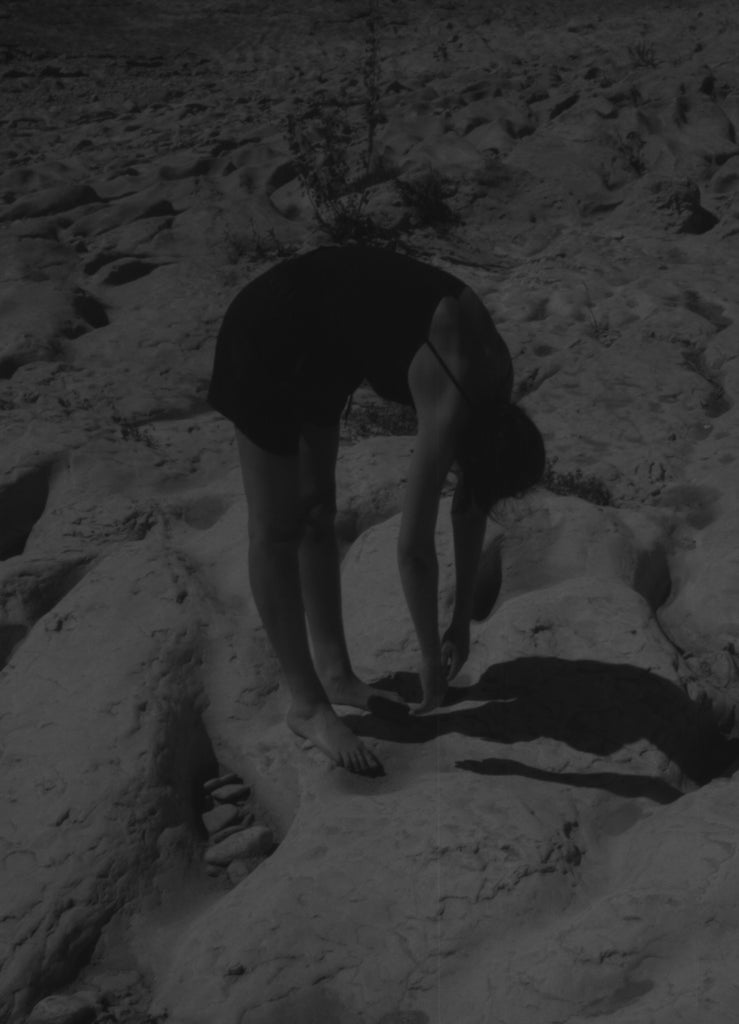 “Similar to an initiation rite, at first the bodies are folded, returning to an inevitable embryonic state before coming into contact with diverse forms of life. By engaging in restrictive positions, the body is able to progressively strengthen its fragile foundations. Opposing the body to mineral masses, searching the waters, grasping plants, exploring the flora, taking the shape of rocks … A sequence of rituals and performative protocols testing the capacity of the body to rely on external energies, thus better localizing hitherto unknown internal resources.