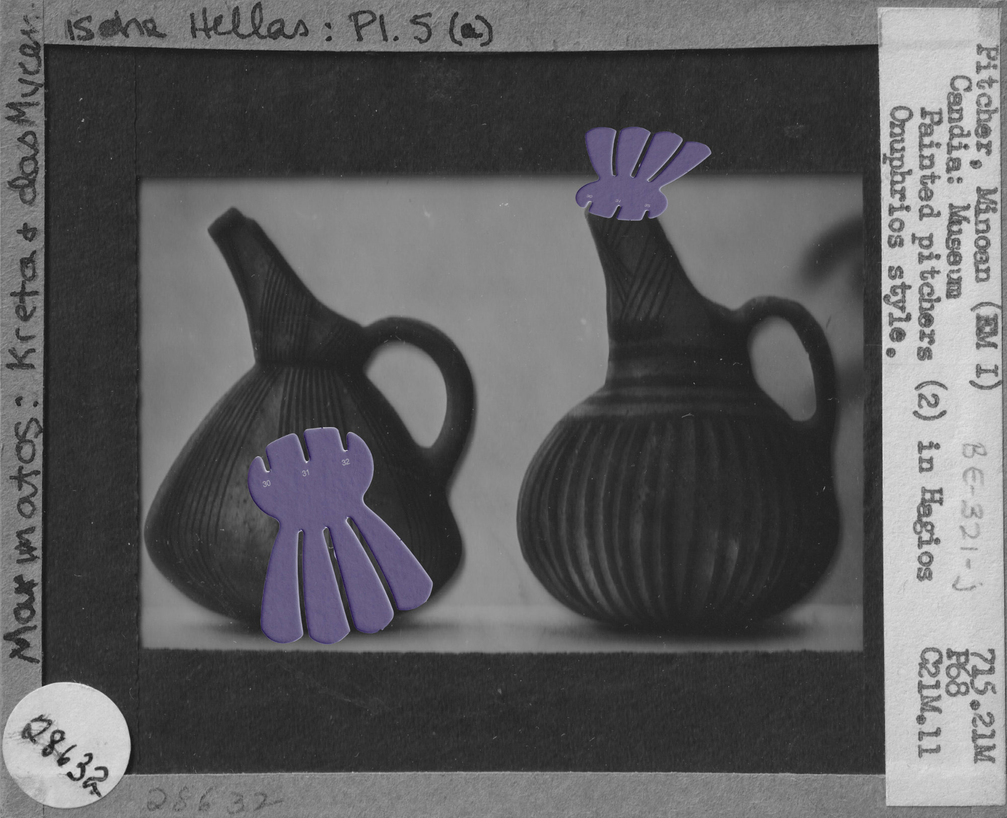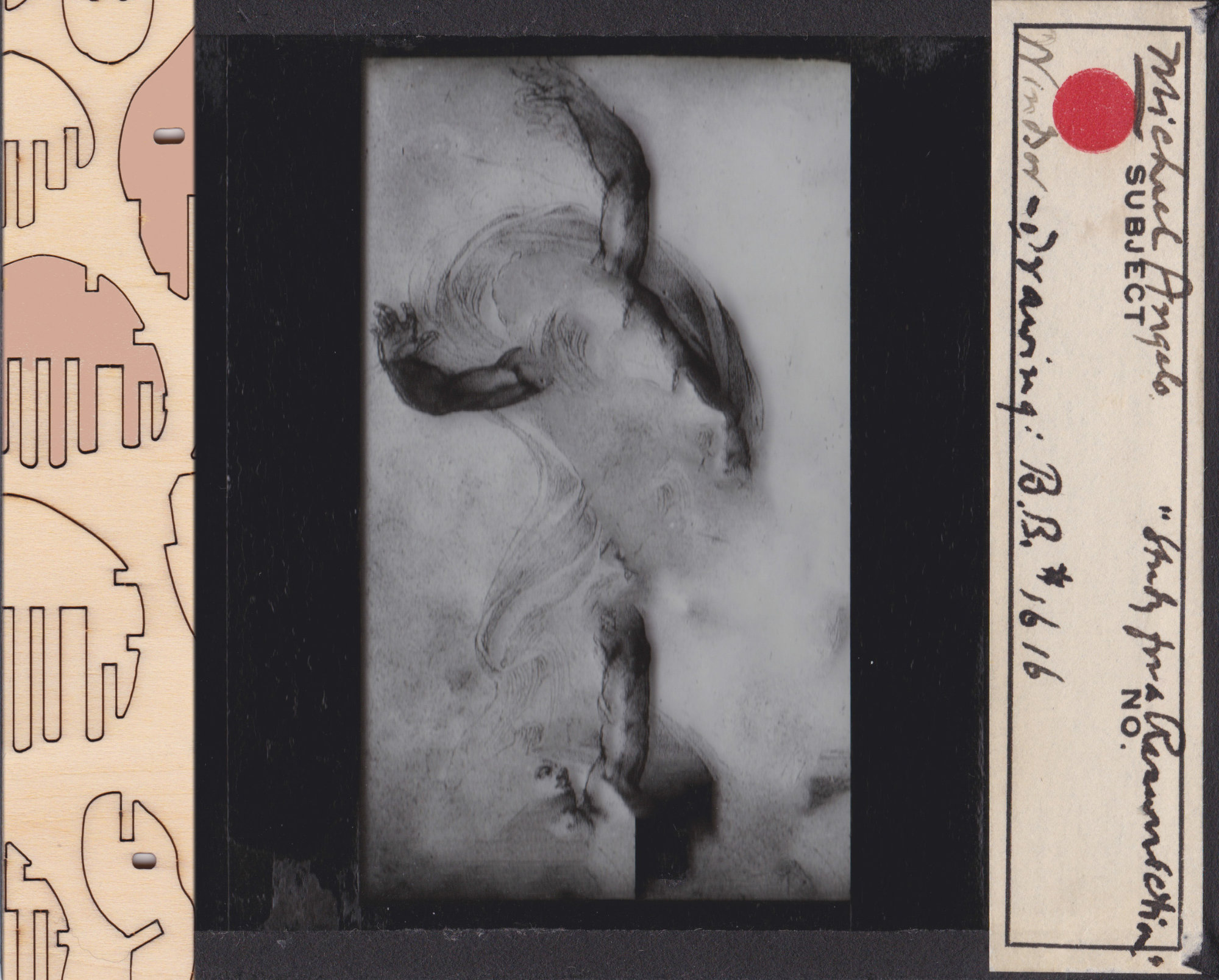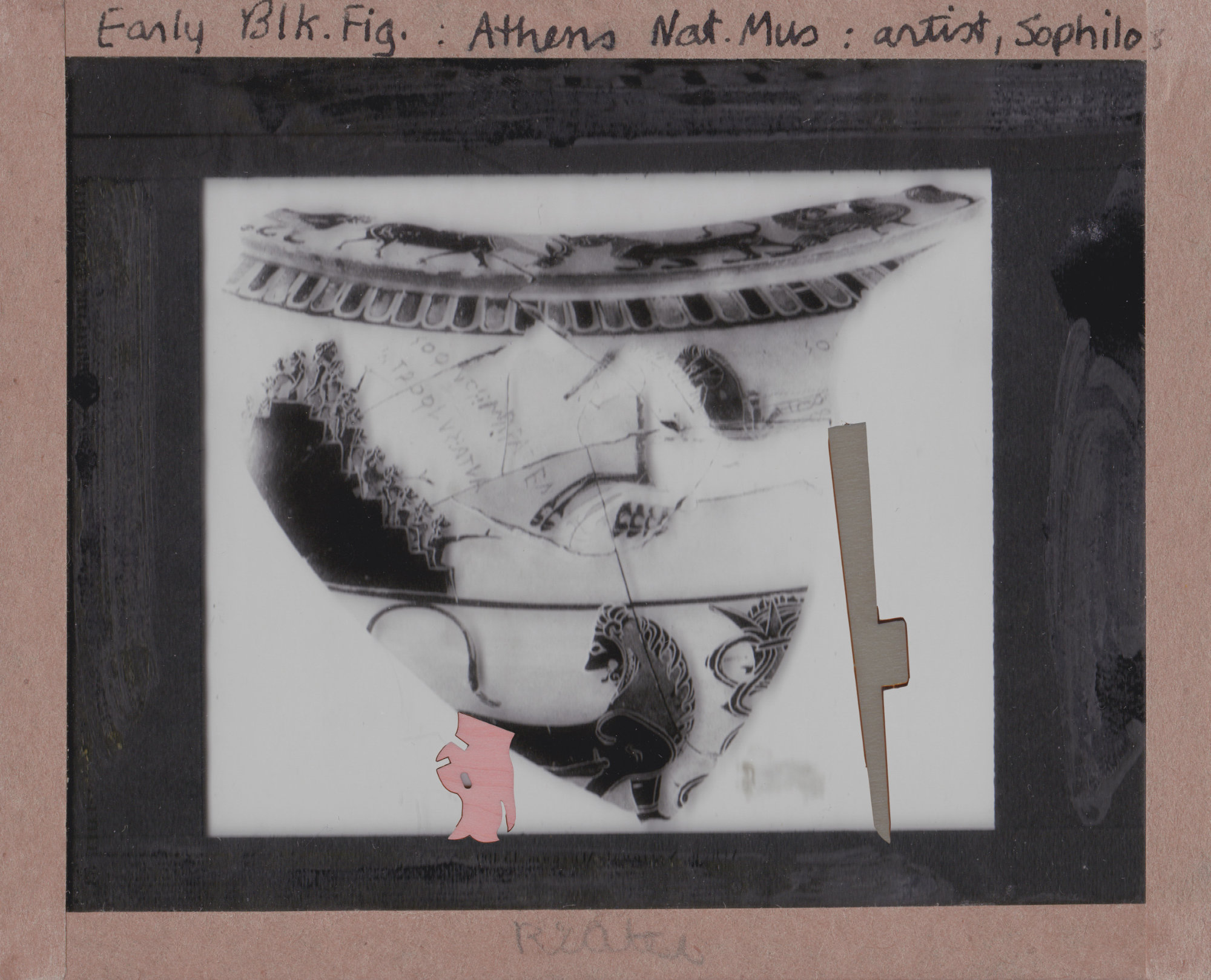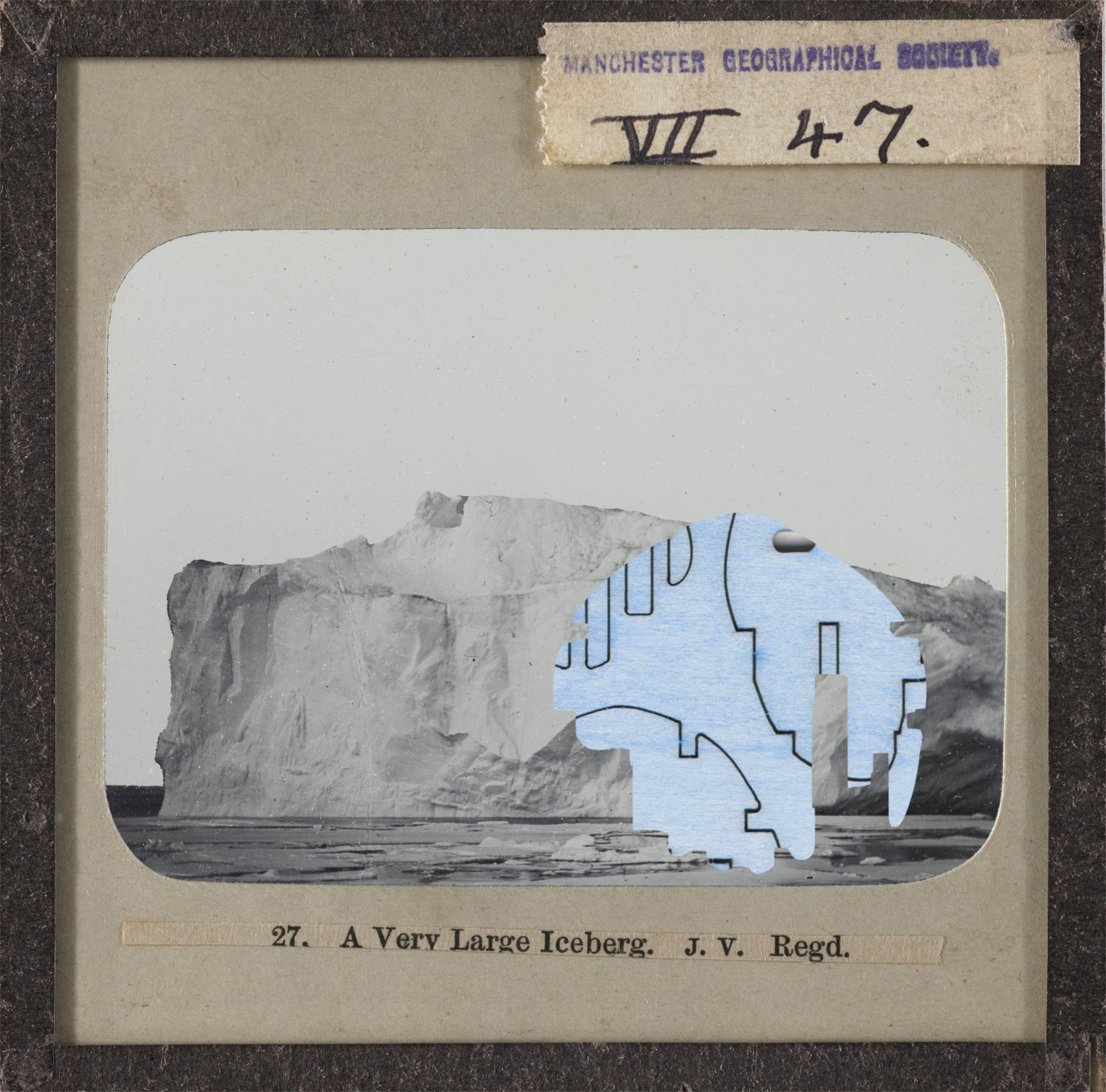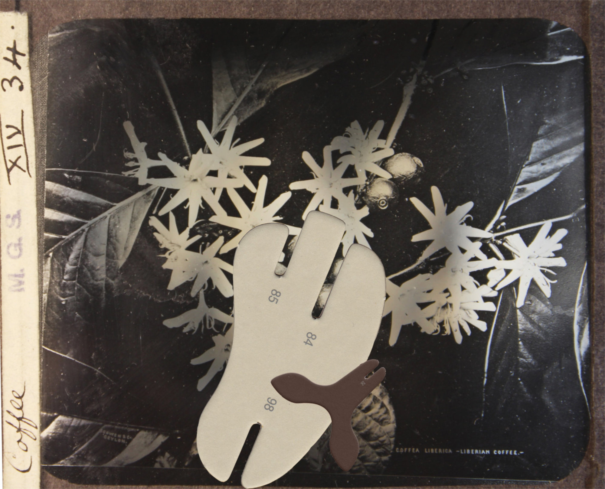Other than the actual magic lantern slides, I have been adding to my collection some digitized slides downloaded from different online sources and started to include documents with natural elements and landscapes too. Some of my assemblages are made by scanning the original documents along with some abstract puzzle cut-outs, while in others I would rework a digitized document directly on photoshop by erasing or adding new elements onto the original file. The result is a collection of finds from the past where statues, vessels, artefacts and nature are all brought together to form a revamped historical categorization. The one element that brings consistency throughout the whole archive is my insertion of abstract cut-outs. Hence, the recurrence of these fabricated elements in almost every slide represents the main criteria under which my classification is recorded.