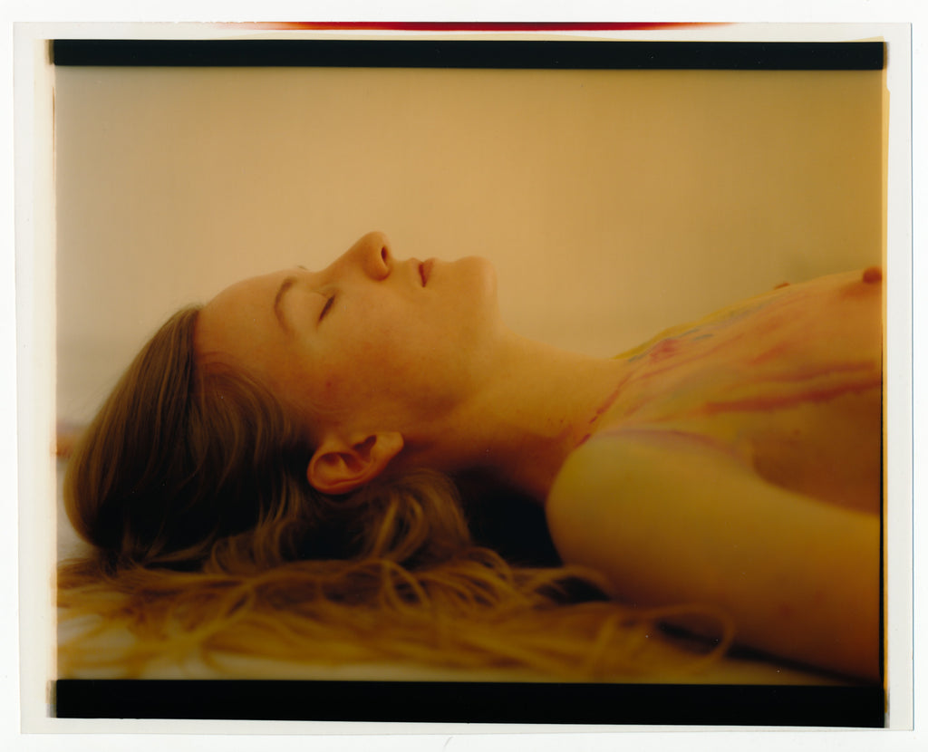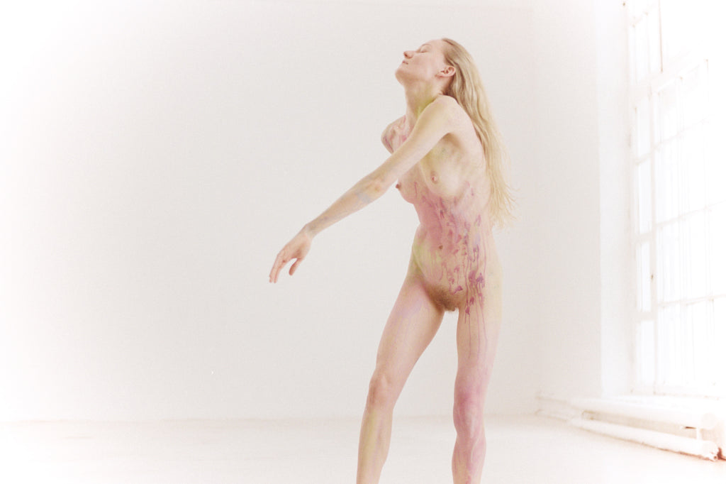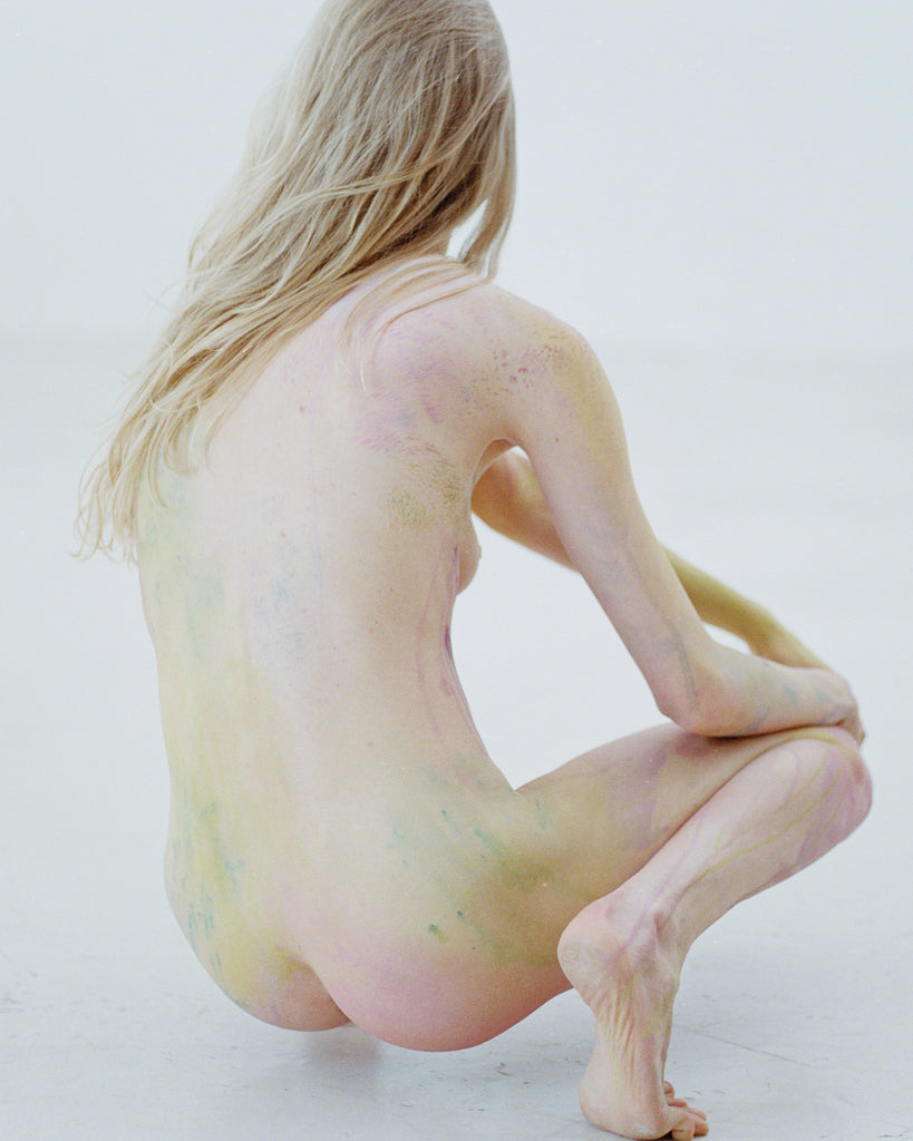 I captured Sonya naked as I love the idea of people being truly natural as they are without clothing, more vulnerable, but calm and safe at the same time. I invited make up artist Margo Airapetova to create bodyart which reminded me of blooming flower fields and warm sun reflections.