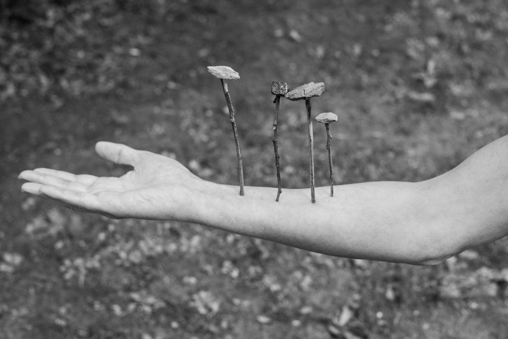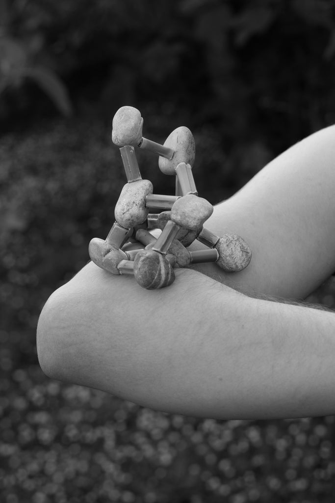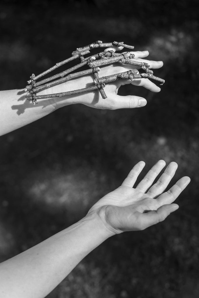 « Non technological devices » are composite tools made from gleaned natural elements, assembled to mimic the technological devices that populate our daily lives. Between rudimentary productions and science-fiction creations, these objects are as much prolongations of bodies as they are hindrances. Associated with invented artefacts whose use remains to be discovered, they create together a fictional universe that functions as a mirror held up to our fantasies of the future.