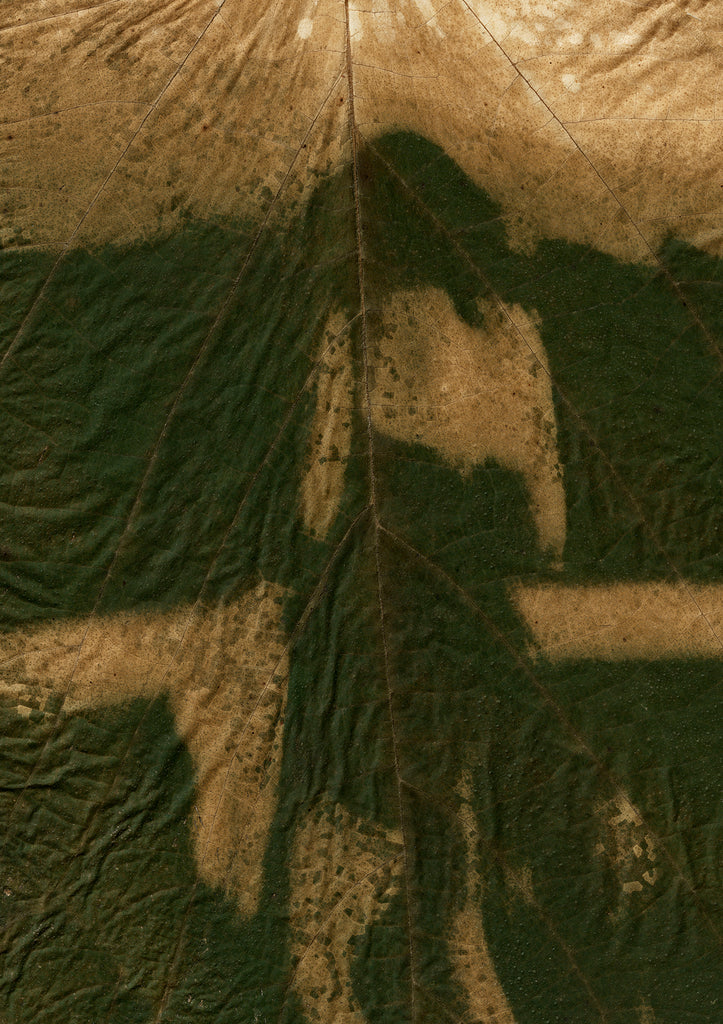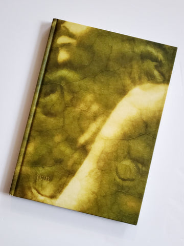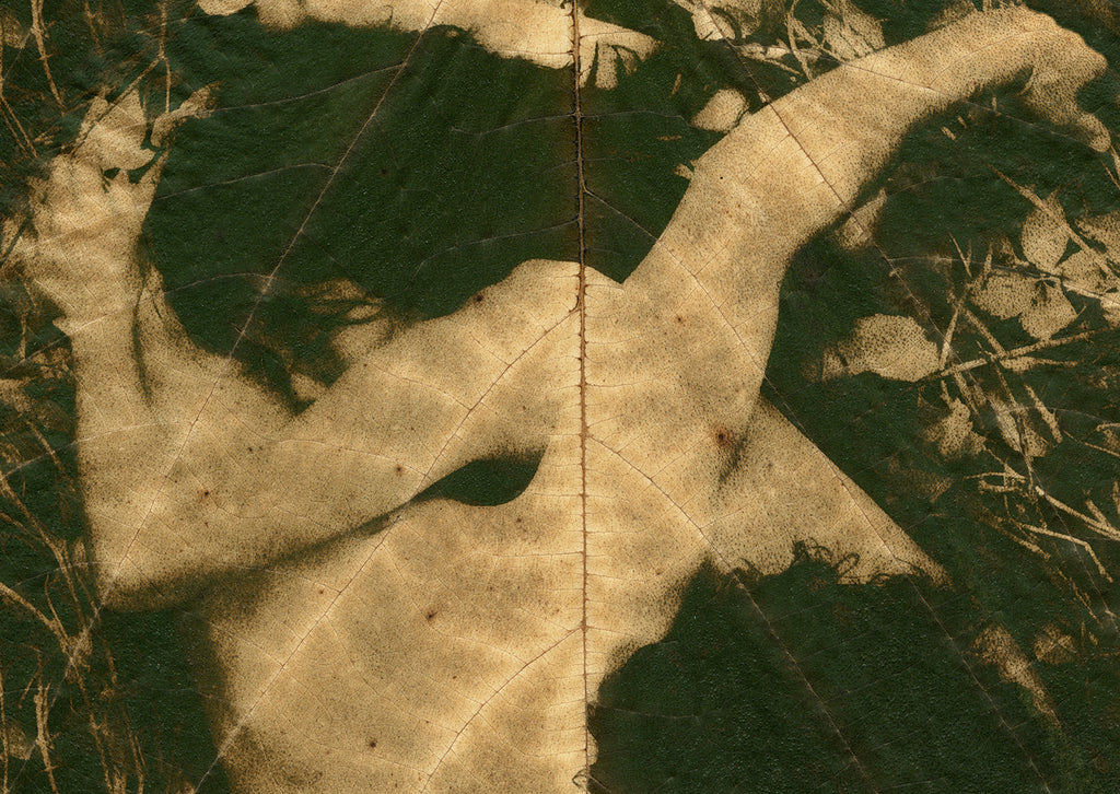 “The book PAN was born in a garden during a summer, year 2020. Using tree leaves such as catalpa, amaranth, japanese mulberry, vine… the photographer and gardener Patrice Dion reveals his images thanks to the action of the sun on the clorophyll of tree leaves: he calls that the helio-chlorophyll-type.