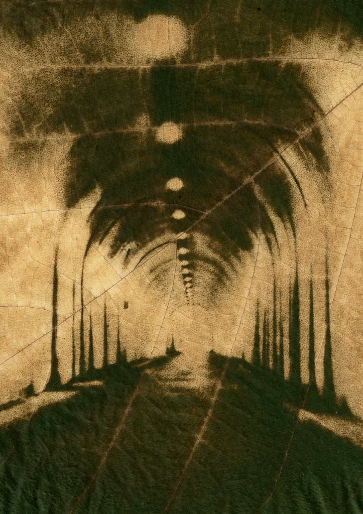Using nor chemicals neither electricity, he gradually improves his process and ends up obtaining a precise image on each tree leaf used instead of a photosensitive paper. That approach echoes the photographic experimentations of anthotype. Other contemporary photographers use the same technique, such as Japanese artist Hiro Chiba and American-Vietnamese photographer Binh Danh.“