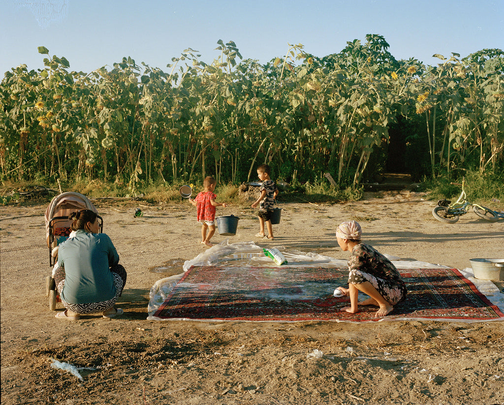 “Farish in the Jizzak region of Uzbekistan is a somewhat magical place, where the Eiffel Tower («Farish» sounds almost like «Paris» in Uzbek and Russian) greets you at the entrance and where people build their own world that is not seen from outside. My project is a story of a large community of seasonal agricultural workers. For 8 months of the year, they live on the land of others with their whole families, build houses, work with their hands, grow tomatoes, melons and watermelons, raise their children, and watch Turkish TV series in the evenings. And then, for the winter, they go to their home in the east, to the Fergana Valley.