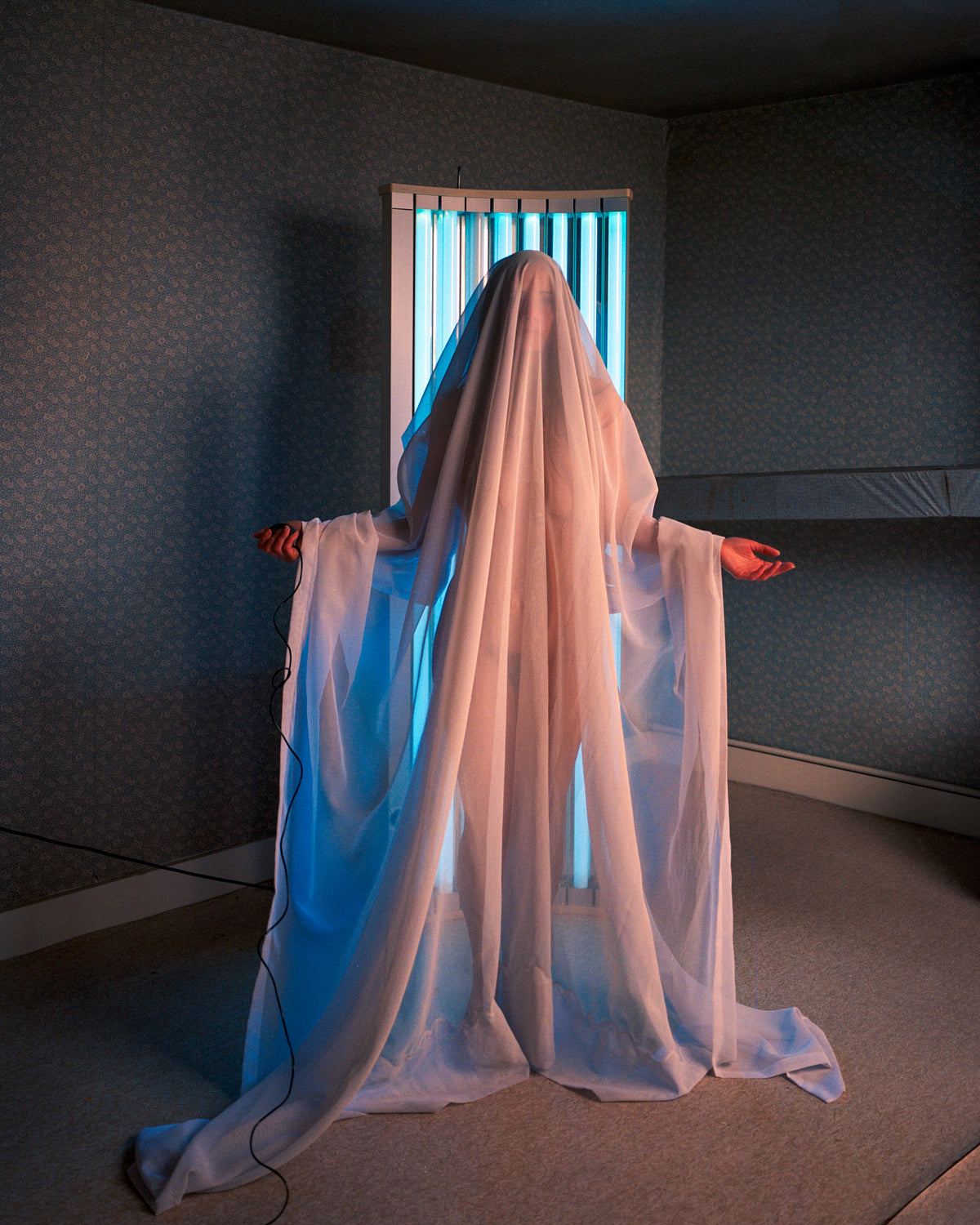 “Spending time in their home and photographing myself in their clothes, made me feel like a child again. While running up and down the stairs, just as I did when I was a child, memories came back to me and inspired me to take pictures. On the one hand, I felt sadness because they were no longer there. On the other hand, I felt happy and relieved because I had this private playground, where I could move freely and express myself, with no one asking questions.