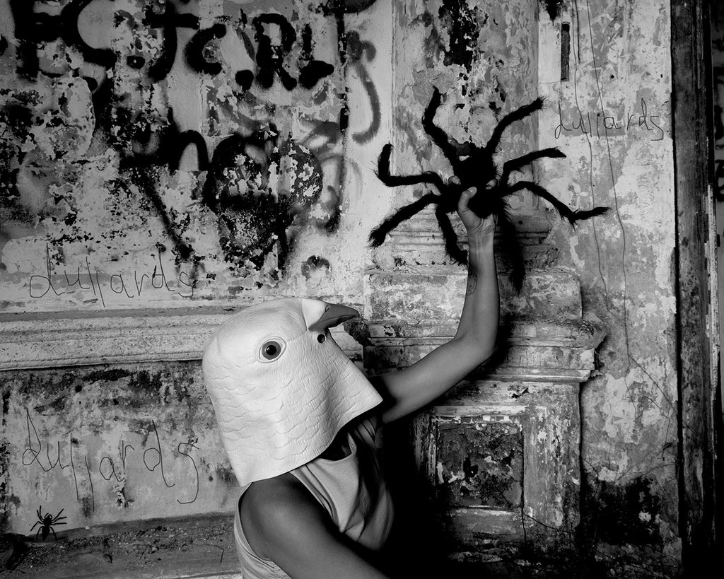 By performing with pigeon masks and spider props in different abandoned sites in Hong Kong, I try to learn the feeling of being classified as a social outcast. I challenge the idea of eugenics by judging people by their external conditions and its influences and adaptation to the history of racism.“