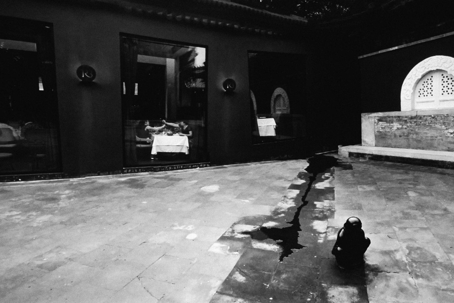 Unable to overcome the physical barriers, I ended up crossing ‘the border’ by taking an alternative route. I decided to explore the city through the pale light of my computer monitor using Google Street View. I would virtually wander through the streets equipped with an analogue SLR camera (Canon T70), capturing the pixels on film to create a sense of physical connection. It was a paradoxical experience, as Beijing’s grandeur and density made me feel like an alien discovering a new world.”