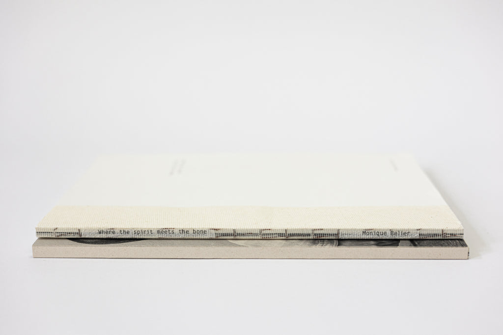 “Where the spirit meets the bone” is my first monograph and graduation project, consisting of 112 pages with black and white images and texts that serve as a guide and provide context for a language that may seem strange to a non-dancer. The book is bound with thread and mesh, allowing the spine to remain visible. Printed on eco-friendly paper, it comes with a slipcase made from agricultural waste, keeping it organic, much like the images within the book.